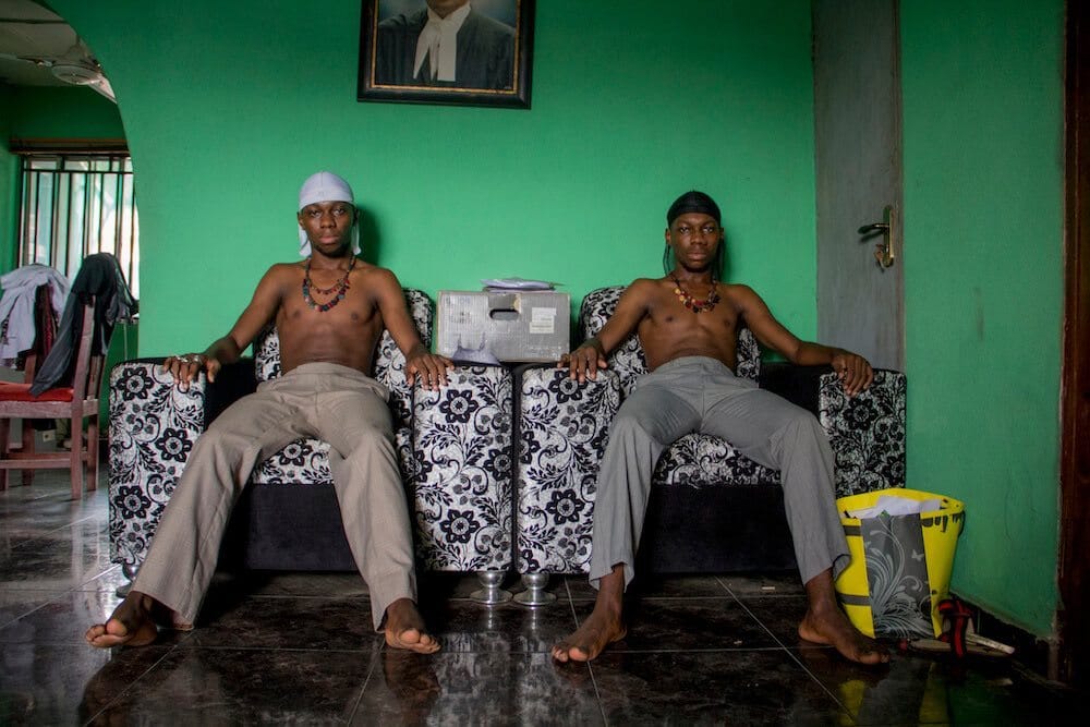 « Sans titre », acrylique et peinture aérosol sur toile, 2019 © Hoda Kashiha. « Kasala! », photogramme, 2018. © Ema Edosio Série « Ibeji », entre 2017 et 2019. © Stephen Tayo.