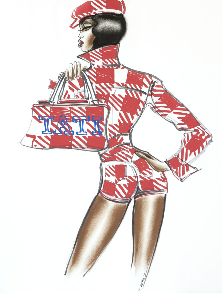Alors que l’Upcycling est la dernière tendance chez les trendy fashionistas, MERCI enseigne bien connue du marais, propose dans son exposition de rentrée les fameux sacs Tati customisés éco-responsables. Mais le premier à avoir mis en avant ce motif à carreau devenu iconique est Azzedine Alaïa.