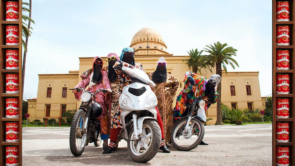 Elles ont fière allures ces amazones sur leur moto à Marrakech avec foulards, voiles et lunettes de soleil siglées, les « Kesh Angels » comme il les baptise. Ou ces musiciens gnaoua (confrérie traditionnelle sud-saharienne) posant fièrement à côté de leur monture, les « Gnawi Riders ». Puis ce sont ses « rockstars »,tel JR qui se sont pris au jeu.
