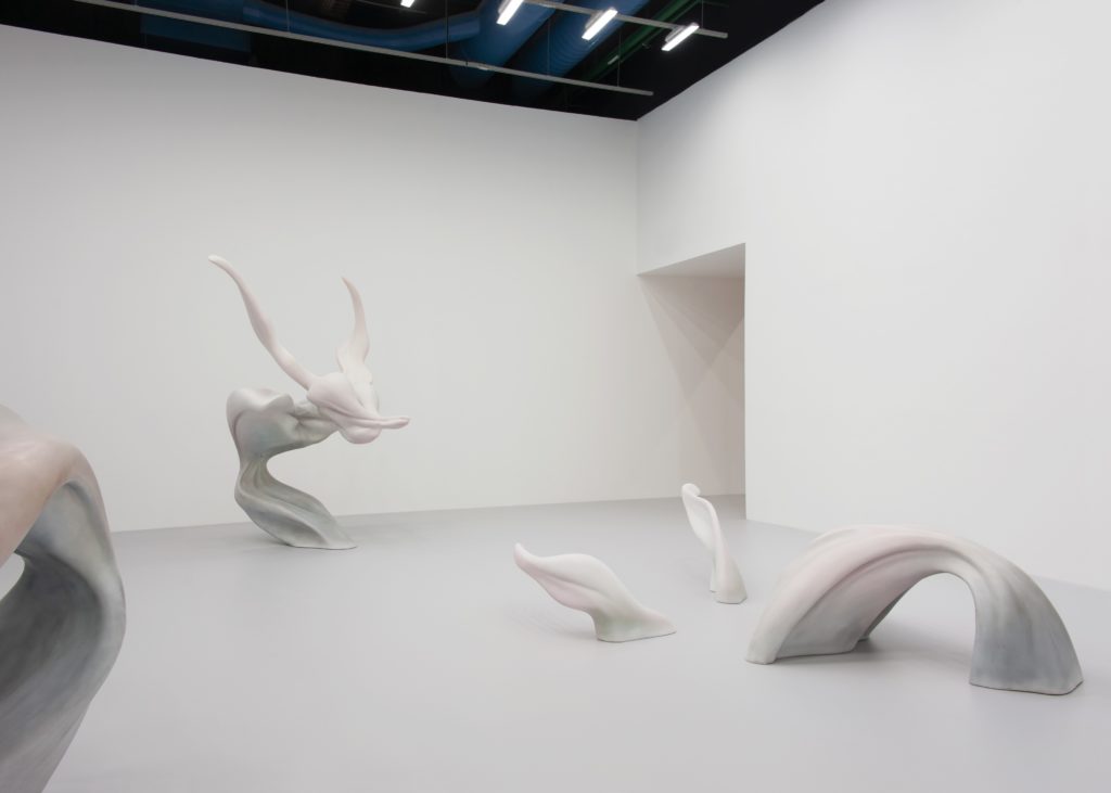 Nous sommes accueillis par cette peinture ostensiblement spectaculaire de Ida Tursic & Wilfried Mille, sorte de condensé d’une œuvre ironique et jubilatoire pleine d’humour qui plante le décor. Nous découvrons ensuite une tout autre pratique, celle de Marguerite Humeau, qui propose à travers des installations pluridisciplinaires à la pointe de la technologie un récit dystopique faisant écho à la catastrophe écologique en cours.