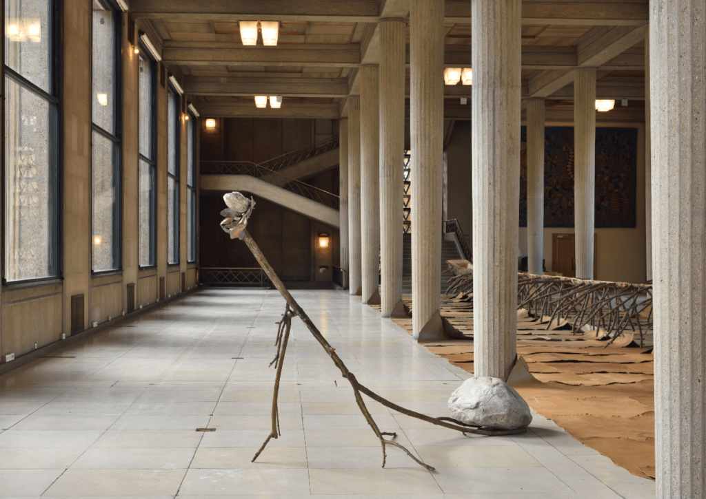 C’est l’un des temps forts de la semaine de la FIAC, l’intervention magistrale de Giuseppe Penone au cœur de la vaste salle hypostyle du Palais d’Iéna (CESE) et de ses majestueuses colonnades de plus de sept mètres de hauteur signées Auguste Perret. L’artiste choisit de présenter l’œuvre monumentale Matrice di linfa (Matrice de sève) ainsi que de deux sculptures dévoilées ici pour la première fois.