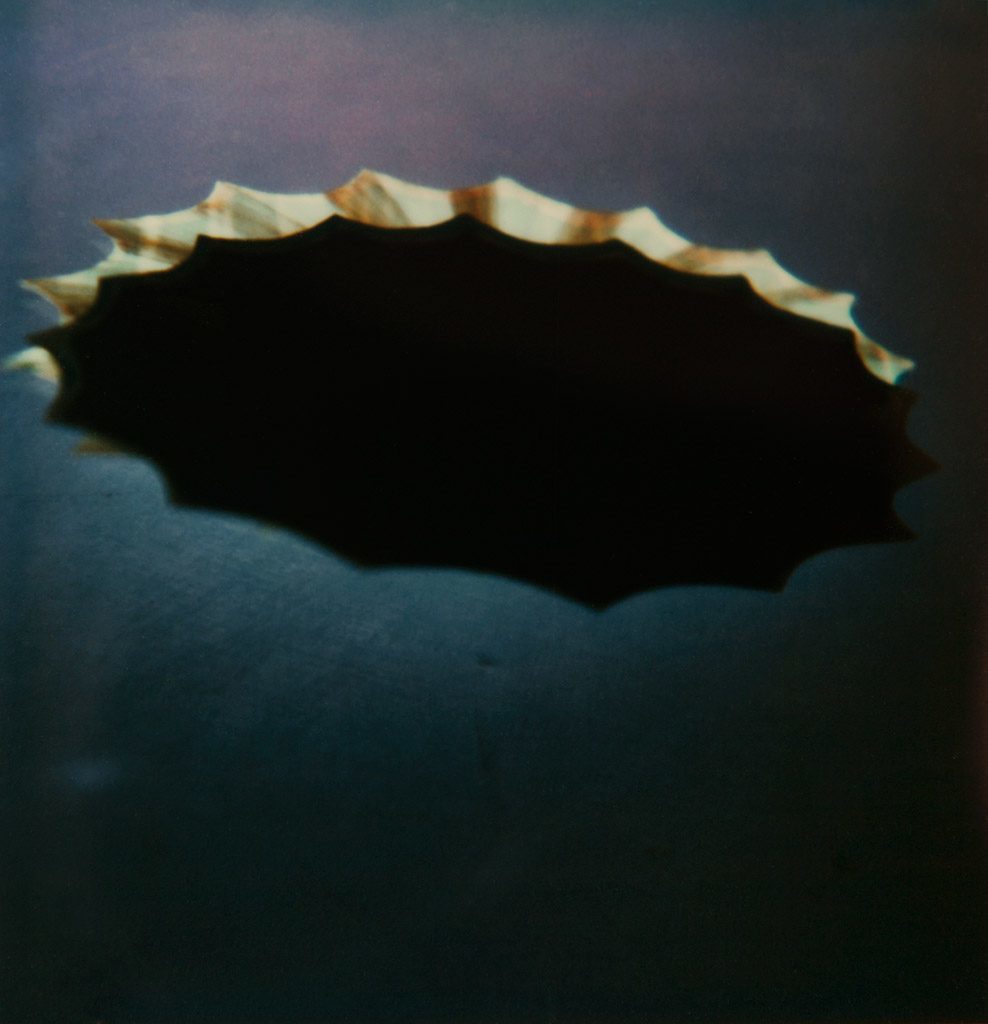 Je dirai qu’il est omniprésent dans le processus de création de Corinne Mercadier qui a commencé par dessiner avant d’approcher la photographie. Elle a toujours continué sa pratique du dessin d’une part pour construire ses séries photographiques sous forme de carnets de travail et dans le même temps en rêvant des images comme je le mentionnais tout à l’heure « le crayon à la main » comme aime à le dire Corinne. Ces dessins très oniriques de la série Black Screen Drawing font réellement écho aux Polaroids que nous exposons. L’importance du dessin et de la peinture est visible particulièrement dans les Polaroids de la série Glasstypes, qui sont des photographies de peintures sur verre. On peut voir dans l’exposition l’évolution entre les Glasstypes de 1987 et ceux de 1998, d’abord des architectures liées à son amour pour Giotto, et plus tard des objets étranges…Les dessins de Black Screen Drawings résonnent aussi avec les Polaroids de la série Une fois et pas plus, dans laquelle Corinne travaille les lancers d’objets pour la première fois dès les années 2000.