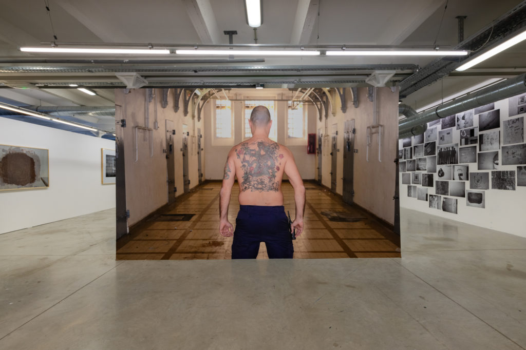 » Cette œuvre d’immersion dans la culture pénitentiaire se fabrique à partir des histoires vécues, des prisons traversées et des mises en situation du personnel pénitentiaire questionnant sa relation à l’imaginaire carcéral et à la figure de ceux qui l’organisent. Comme si l’œilleton s’était inversé, le spectateur découvre, en images et en textes, les histoires de ceux qui sont perçus comme des bourreaux, qui apprennent à surveiller tout en étant controÌés de toute part, parfois confrontés à des renversements du regard, à des pleins d’humanités, à leurs propres peurs et doutes. »