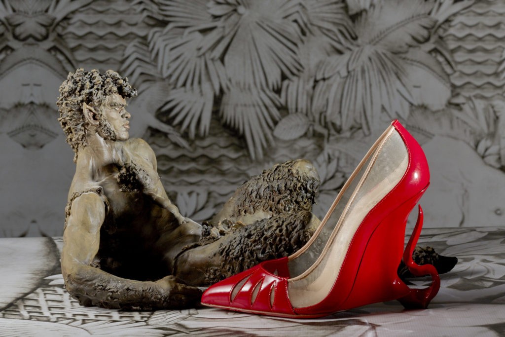 Peu adepte des évocations souvent très académiques de la biographie, Christian Louboutin a choisi de confier cette tâche à l’artiste néozélandaise Lisa Reihana, qu’il a découverte à la biennale de Venise en 2017. A travers une œuvre monumentale spécialement conçue pour l’exposition – une fresque digitale mouvante et hypnotique – elle retrace les moments, les lieux et les personnalités clefs de la vie et de la carrière de Christian Louboutin.