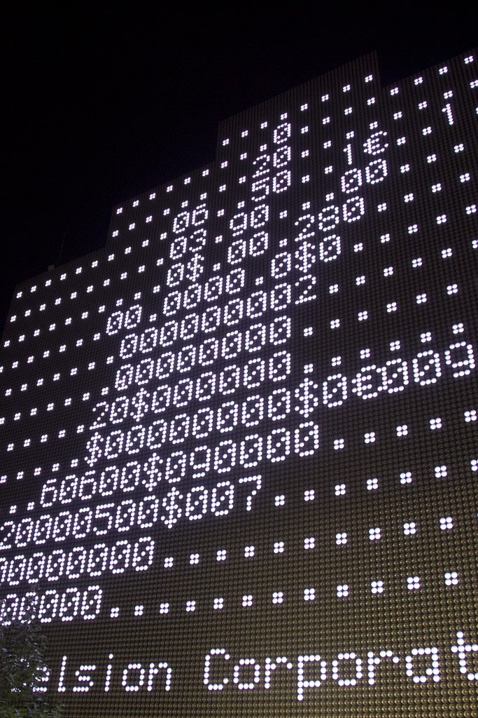L’argent et sa valeur matérielle et immatérielle de Yves Klein, Sophie Calle jusqu’à des pratiques spéculatives les plus sophistiquées signe la démission du sujet autonome face à la machine. Kevin Abosch avec son projet « Personal Effect » souligne que près de 4 millions de bitcoins et cryptomonnaies sont perdues définitivement suite à des failles de protection des clés privées. De même chez le collectif RYBN et son ensemble d’algorithmes boursiers ésotériques et dissidents imaginés par des artistes, non professionnels de la finance.