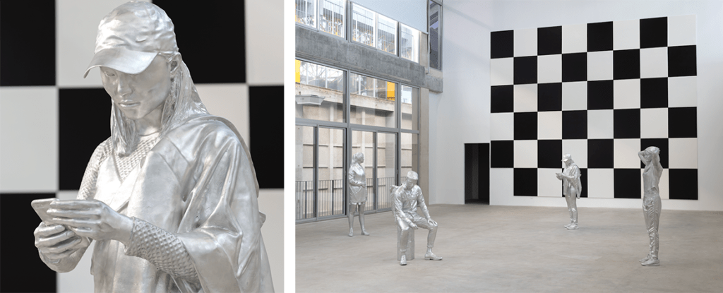 Au cœur de l’exposition se tient un groupe de sculptures réalisées en aluminium à partir de scans 3D de jeunes gens figés dans une action : consulter son téléphone mobile, attendre ou se détendre. Le titre Conversation Piece souligne le manque de communication entre les modèles. Les expressions du visage ne laissent percer aucun sentiment et nous ramènent à la surface des corps, subtilement agrandis, à la fois imposants et étrangement absents à la situation.