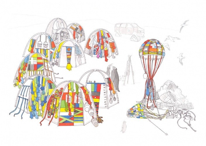 Du « croquis-esquisse » au « dessin au trait » nous arrivons au « dessin-œuvre » en tant que tel au fil de cette relecture d’une décennie extrêmement fertile articulée autour de leur triptyque et trilogie : Food/Water/Life, titre du livre chez Actes Sud qui retrace leur vision citoyenne et engagée de l’art. D’un art anthropocène à la slow economy, l’écosystème de Lucy + Jorge Orta de l’Amazonie à l’Antarctique en passant par le Canal de Venise ou la rivière Hang Pu en Chine, offre une vision collaborative et participative. Le dessin est le vecteur idéal pour incarner cette pensée du rhizome et de l’arborescence chers aux artistes. Plongez sans plus attendre dans les méandres de ce laboratoire du geste et de la pensée !