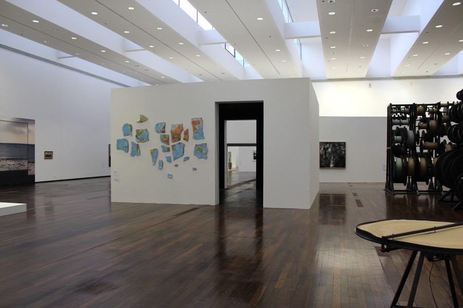 Vue de l’exposition de la collection « Le vent se lève ». Au centre, Laurent Pernot, Atlas, 2017.