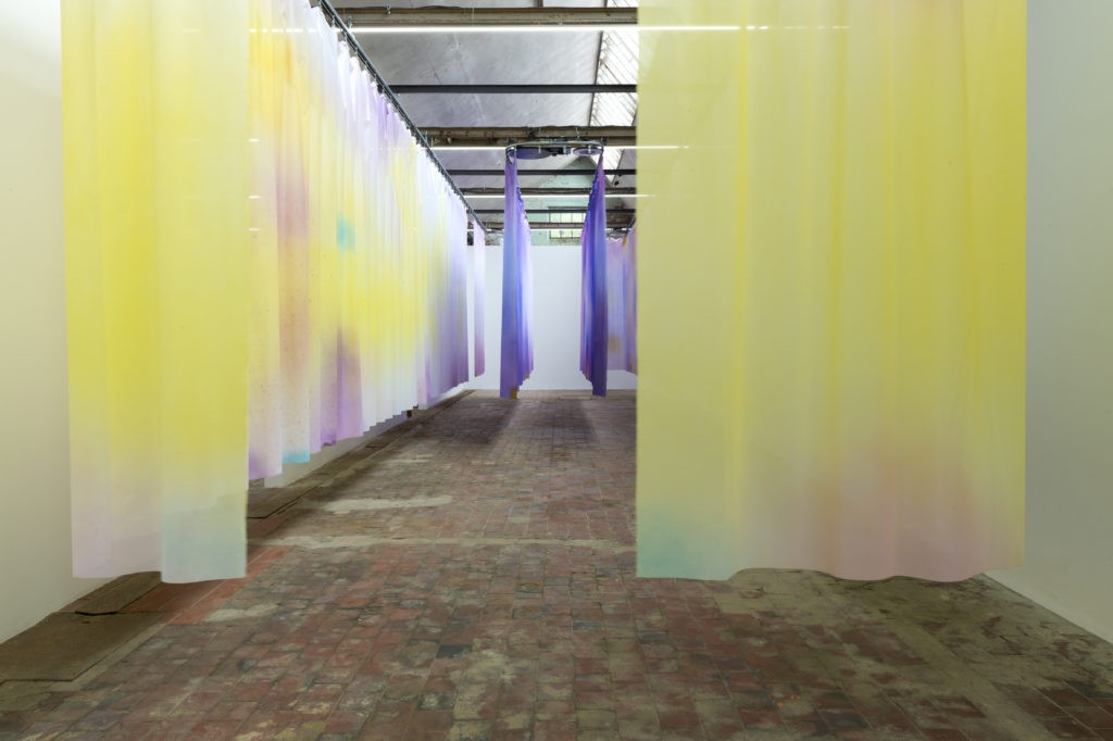 « La couleur au jour le jour » , fil rouge de Normandie Impressionniste 2020 imaginé par le commissaire Philippe Piguet a remarquablement trouvé un écho chez les artistes contemporains invités par Jonathan Loppin, fondateur du Shed (relire notre interview du 29 juin et hommage d’Antoine de Galbert) : Bruno Peinado dans le bâtiment principal de l’association, ancienne usine de mèches à bougie et Flora Moscovici dans la nouvelle antenne du Shed, l’Académie. Chacun dessine un paysage coloré et miroitant dans le sillage des impressionnistes, repoussant les limites de l’abstraction esquissées par Monet ou Turner.