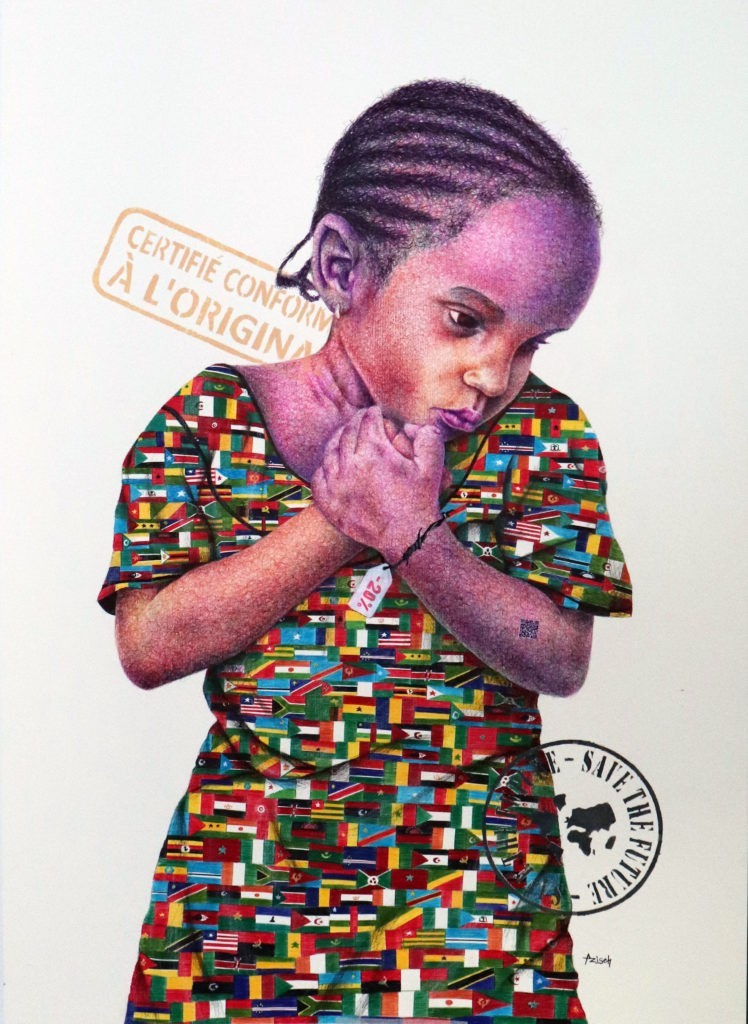 Emmanuel Azizeh, Take me home 2018 Stylo bille et acrylique sur papier, 70 x 50 cm, Courtesy Galerie Polysémie, Marseille