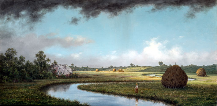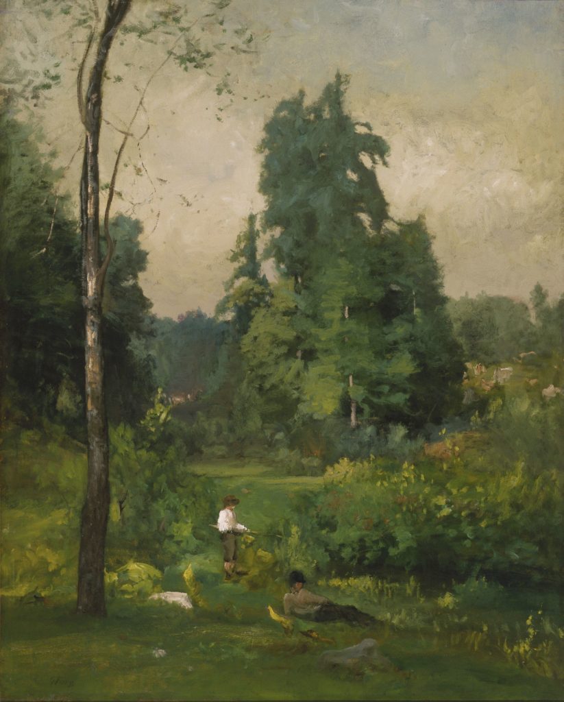 Du fait de la période très large que nous avons choisie d’explorer : 1860-1910, avant et après l’impressionnisme en partant de motifs typiquement américains comme les grandes distances, l’Ouest, des paysages spectaculaires et harmonieux à l’aide de la photographie (William Henry Jackson, Yellowstone) et d’une technique picturale méticuleuse en vue d’ une vision idéologique et promotionnelle, nous arrivons à la fin XIXIème-début XXème à une dimension plus forte et personnelle comme chez Winslow Homer, sublime « Nuit d’été » (musée d’Orsay) ou George Bellows qui ouvrent à la modernité à la suite de la révolution opérée par Whistler. Au milieu du parcours, même si l’on trouve de vraies découvertes et des chefs d’œuvre, l’influence de l’Europe reste dominante sur les artistes américains, entre l’Ecole de Barbizon et l’impressionnisme.