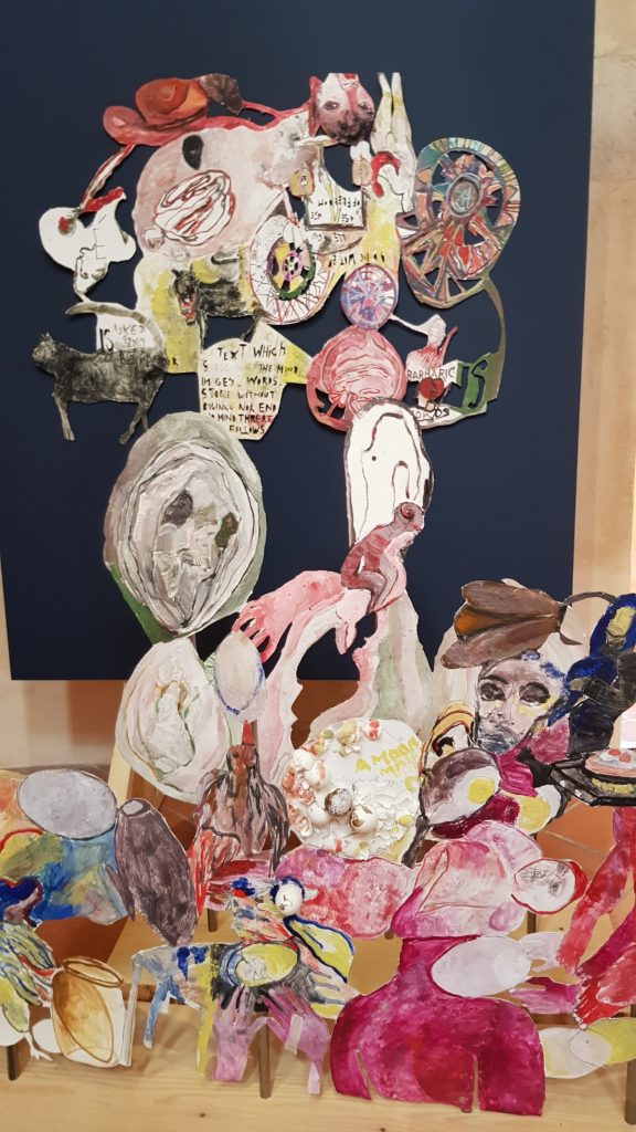 « L’hospice : l’étrange, le poétique et le possible » à la Vieille Charité est le volet de Manifesta le plus réussi à la fois pour sa réponse à l’histoire du lieu, la Vieille Charité ayant servi d’hospice, d’asile et d’hôpital et les artistes rassemblés autour d’une réflexion intellectuelle nourrie et sensible. A partir de figures tutélaires telles que Walter Benjamin, Antonin Artaud, Rimbaud, Leonora Carrington, certains ayant transité par Marseille, les voix dissidentes et intranquilles de Pauline Curnier Jardin, Judith Scott ou Anna Boghiguian prennent un écho vibrant aux confins de l’art brut et du langage. Petit bémol pour l’installation de cette dernière dans la chapelle relativement à contre-emploi face à la verticalité que suggère cet espace. Elle était plus convaincante aux Beaux Arts de Paris. On y apprend de plus que ces Traits d’Union.s qui construisent Manifesta, empruntent au titre du journal de l’hôpital psychiatrique de Saint-Alban qui a accueilli pendant la guerre les surréalistes Paul Eluard et Tristan Tzara.
