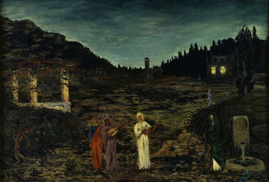 A Munich où il étudie à l’Académie des Beaux-Arts il définit sous l’influence du romantisme allemand et de la philosophie de Nietzsche la proto-métaphysique, en s’identifiant fortement lui et son frère aux Argonautes. Une Antiquité sublimée par les mythes autour de « l’éternel présent » (Ainsi parlait Zarathoustra) entre lumières et ombres, féminin, masculin, dialectique dionysiaque ou apollinienne.