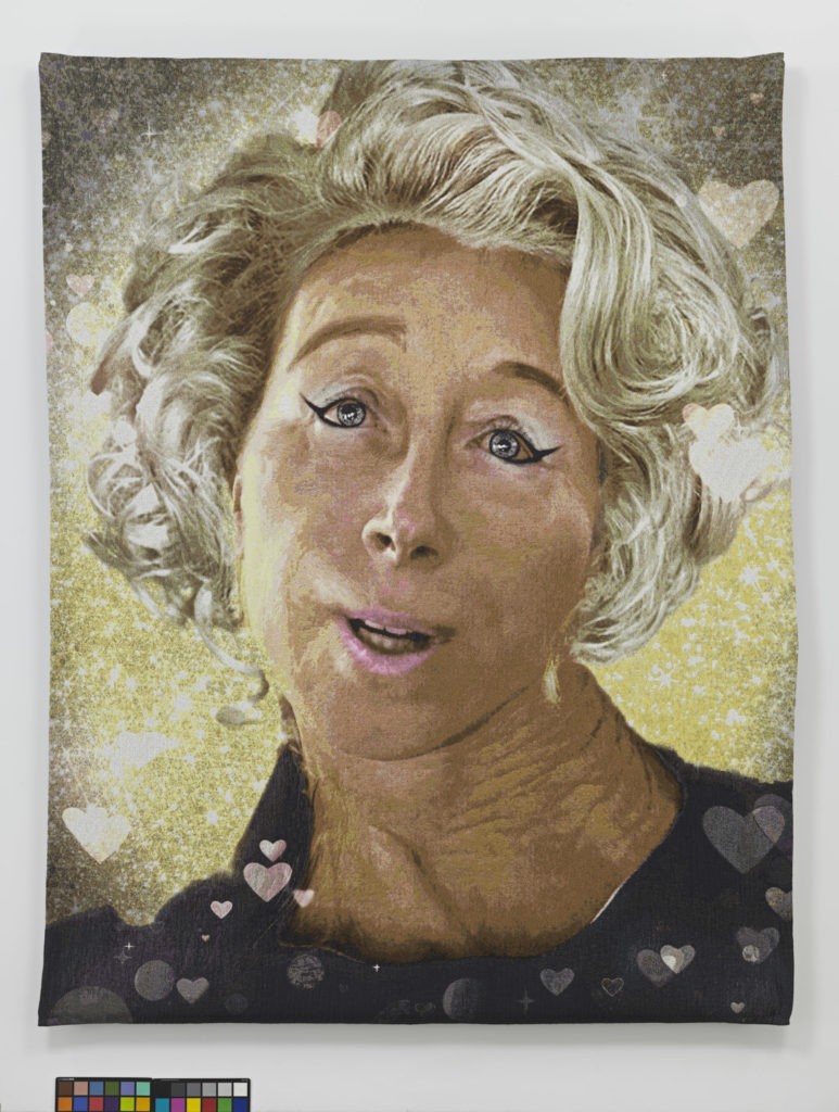 Pour elle, ces photos Instagram ne sont pas des œuvres d’art, mais comme elle voulait que ces images existent, elle a choisi de les transférer sur tapisserie, dont la technique traditionnelle va à l’encontre des nouvelles technologies.