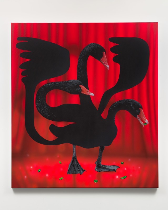 C’est une artiste que je soutiens depuis sa sortie de l’école (Beaux Arts de Marseille). Elle travaille aussi à partir de l’ordinateur et utilise la peinture à l’huile avec un temps très important de réalisation. Chaque surface est dégradée avec toute sorte de matériaux qui parasitent la composition. Elle fait partie des figures montantes à l’international de la peinture française à mon sens.