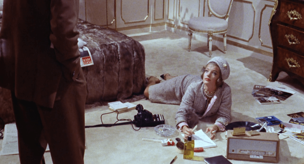 Le tailleur est évidemment sa marque de fabrique, véritable manifeste à lui tout seul d’une véritable posture faite de fausse nonchalance et de quête émancipatrice. Il est l’équivalent chez elle du costume masculin, concentré de souplesse et de précision qui laisse au corps son mouvement et le libère de toute entrave. Ce moment du parcours dans la galerie courbe est exceptionnel. Comme avec les robes ou les jupes conçues pour des femmes qui travaillent. On est à des années lumières du New Look de M. Dior qui triomphe après-guerre. Le chic se fait casual autour de la notion de confort à travers l’emploi de matériaux inattendus empruntés au sport et au vestiaire masculin et une volontaire recherche de simplicité et de cohérence. Une silhouette est née qui devient iconique et traverse de nombreux territoires de la création comme le cinéma notamment à travers des garde-robes iconiques comme pour Jeanne Moraud (Ascenseur pour l’échafaud), Delphine Seyrig (l’Année dernière à Marienbad) ou Romi Schneider (Boccacio 70), toutes inoubliables dans leur parfaite adéquation avec les transformations intérieures vécues par ces héroïnes.