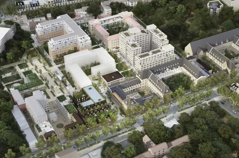 Nous avons choisi ce nom de façon évidente. Cet appel à projet a été ouvert par la Ville de Paris à l’été 2019 avec un cahier des charges très sophistiqué : à la fois rénover l’espace des Grands Voisins, construire un nouveau bâtiment (également sur appel à projet) et créer un nouvel équipement culturel, le tout sans subvention de la Ville de Paris. Il a donc été demandé à un promoteur immobilier de s’associer à un groupe d’architectes et à une équipe culturelle. C’est le promoteur Cogedim qui a souhaité répondre à ce projet conséquent de plus de 12 000 m² et nous a proposé de les accompagner avec leur équipe architecturale constitué des suédois Tham & Videgard à la pointe des enjeux environnementaux et bâtiments green, et des belges 51N4E très compétents dans le réemploi de matériaux et structures existants. Nous qui souhaitions jusque-là rester souples et agiles, nous sommes posé la question d’un vrai changement d’échelle mais avons réalisé que ce lieu nous permettait de structurer quelque chose qui nous ressemble et tenir la colonne vertébrale de départ. Nous avons alors proposé un projet pluriel, collectif puisque sur les 12 000m² de l’appel à projet, 8000m² reviennent au promoteur immobilier et sur les 4000m² qui nous concernent nous avons décidé d’en occuper une partie et d’en confier une autre à des associations de terrain afin que la solidarité soit au cœur de ce projet. Nous avons réparti le lieu en un espace d’exposition qui se trouvera au niveau du rez-de-chaussée du nouveau bâtiment, un espace de résidences d’artistes avec plus d’une dizaine d’ateliers-logements, projet porté avec l’Institut français intitulé la Villa Denfert et qui rentrera dans le circuit de la Villa Medicis et Villa Kujoyama avec comme spécificité d’aborder des enjeux environnementaux, un auditorium sous l’appellation « La pouponnière » pour des conférences, des performances, des ateliers pédagogiques, et un parcours d’œuvres extérieur suite à notre analyse de galeristes d’un manque d’espaces à Paris pour présenter des œuvres monumentales. Ce parcours qui permettra de créer du lien entre tous ces espaces sera mis en place avec le Comité des galeries. En ce qui concerne les espaces restants nous tenions à proposer un centre d’hébergement d’urgence pour les familles réfugiées au sein même de nos espaces et l’avons confié à Emmaüs Solidarité. Situé juste au-dessus de notre espace d’exposition, c’est un postulat très fort pour nous. Nous avons aussi confié un restaurant et une cafétéria du centre d’art au Refugee Food Festival association qui travaille avec les chefs réfugiés en exil et nous avons souhaité soutenir des structures comme les nôtres à travers un incubateur social géré par MakeSense avec des postes de travail pour aider à l’incubation et au développement d’associations et d’entreprises solidaires.