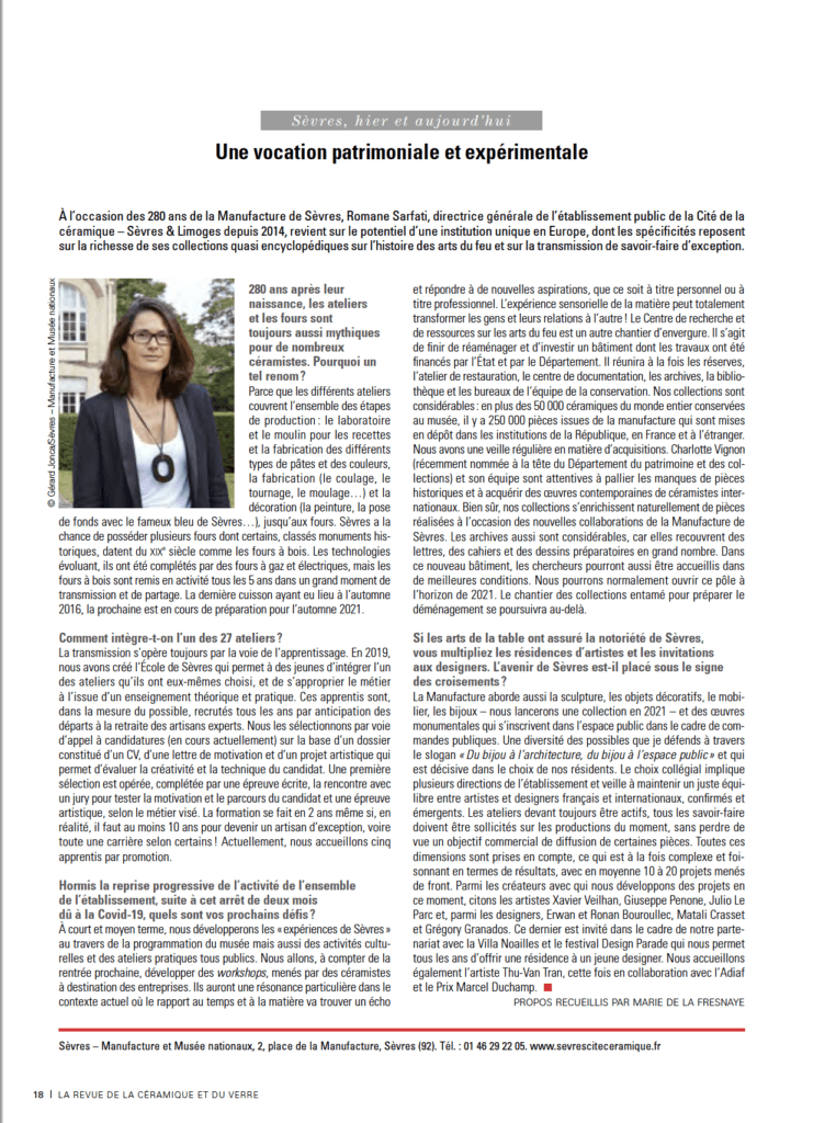Entretien réalisé pour la Revue de la Céramique et du Verre (numéro 233, juillet-août 2020) :