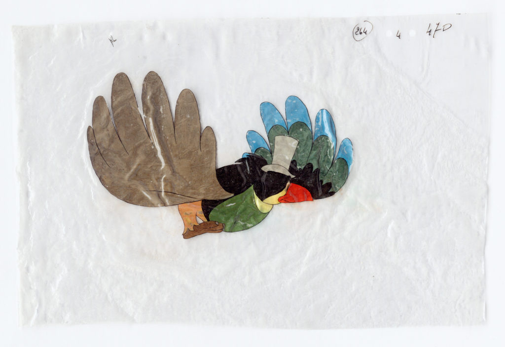 Dessin et cinématographie se rejoignent à nouveau à travers les trois dessins sur support celluloïd du film d’animation La Bergère et le ramoneur de Paul Grimault (1948), inclus dans l’exposition. Rares et précieux, ces celluloïds sont aussi extrêmement fragiles. Ils