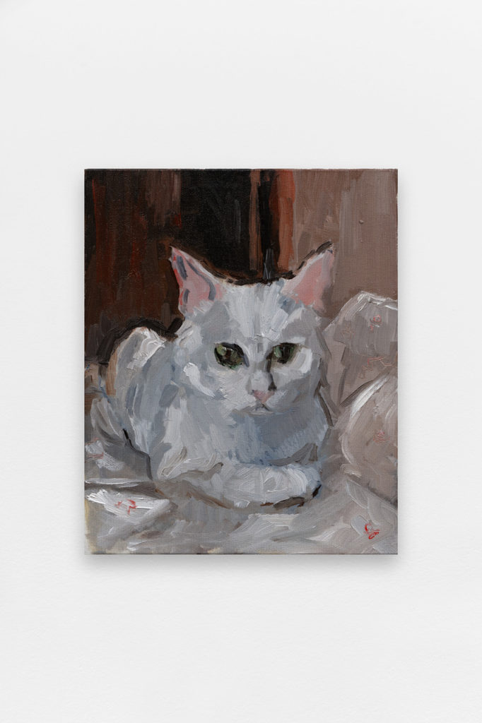 Je dĂ©couvre l’artiste Charles HascoĂ«t Ă l’occasion des portes ouvertes de l’incubateur artistique Poush-Manifesto Ă Clichy, puis entre pleinement dans sa dĂ©marche avec son exposition par Superzoom Ă la galerie Joseph « Je longe mon souffle » en juillet 2020. Je prends une vraie claque ! Ces visages ancrĂ©s dans le rĂ©el oscillent entre attente et sidĂ©ration et cachent sous l’abattement une dĂ©flagration puissante. Effroi et cristallisation se conjuguent parmi les cocktails ou les vestiges d’une nuit d’errance. Qu’est ce qui anime ce coureur de fond qui a choisi la peinture comme viatique aux Beaux Arts de Paris ? Son nouveau projet Ă la New Galerie saisit le motif de l’animal de compagnie pour rejouer les codes du portrait de commande Ă partir du profil Instagram de l’adorable chaton. Ce que disent nos obsessions contemporaines…Charles HascoĂ«t revient sur cette pĂ©riode de confinement pendant laquelle il a fait partie des Studio Quarantine de la galerie new yorkaise JosĂ©e Bienvenu et a Ă©tĂ© exposĂ© Ă la foire West Bund de Shanghai par la galerie Dumonteil avec qui il ouvre un nouveau chapitre.
