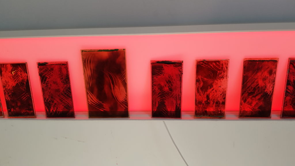 Le chant de canaris dans une cage nous accueillent, comme ceux des mineurs qui utilisaient ces volatiles pour prĂ©venir des coups de grisou. PassionnĂ© de littĂ©rature roumaine et de Russie, Thomas a effectuĂ© plusieurs dĂ©placements en Ukraine et Ă Beyrouth autour du concept de l’exil, de l’errance, la perte. Le verre calcinĂ©, le mĂ©tal en fusion deviennent les catalyseurs d’une mĂ©moire qui achoppe le rĂ©el. Des forces telluriques et un sens du sacrĂ© habitent ce voyageur Ă©pris de Paul Celan.