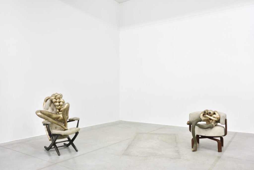 Aux côtés de ces représentants américains majeurs, le Consotrium expose actuellement 3 artistes femmes : Sarah Lucas, Shara Hughes et Paloma Varga Weisz représentées par des galeristes puissantes Pilar Corrias, Eva Presenhuger ou Sadie Coles. Si tout le monde est plutôt familier de l’univers provocant, sarcastique et trash des NUDS et des Bunnies de Sarah Lucas (pièce extérieure spectaculaire et remarquable accrochage) qui fait partie des Young British Artists, l’on connait moins en France les deux autres.