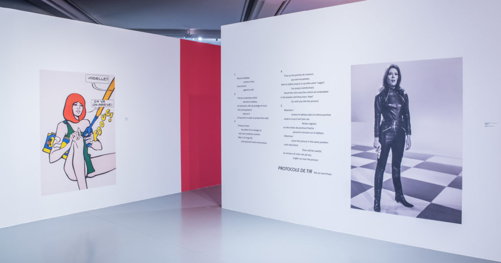 Dans un parcours très immersif, conçu avec Géraldine Gourbe, l’autre commissaire de cet ambitieux projet, nous découvrons d’abord des héroïnes puissantes et flamboyantes dont le sex-appeal envahit les bandes dessinées, les chansons, les films…, nous basculons peu à peu, au-delà du miroir, dans d’autres registres plus graves sur fond de décolonisation, de conquête de l’espace, de questionnements de genre et de classe. Au-delà de Niki de Saint Phalle, Sturtevant Martha Rosler ou Yoko Ono, ces amazones redécouvertes viennent de l’Europe entière avec une place importante des françaises et des italiennes.