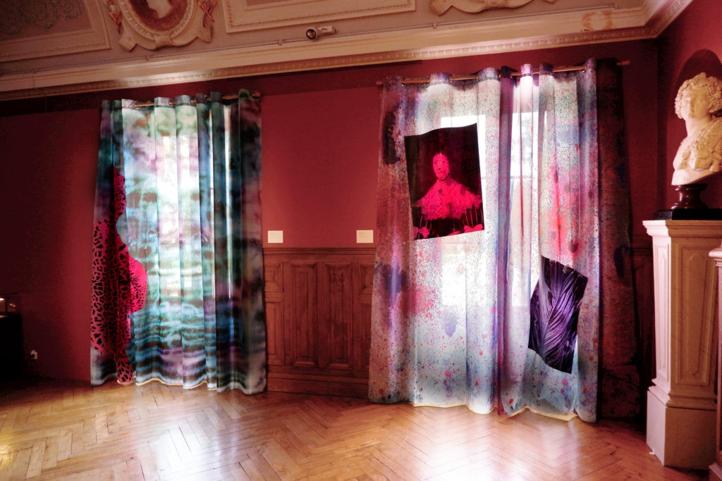Je rencontre Raphaël Barontini à l’occasion de l’exposition collective Comme de longs échos conçue par Julie Pellegrin et Jean-Michel Jagot Domaine de la Garenne Lemot (Loire-Atlantique) où plusieurs de ses œuvres entrent en dialogue avec l’architecture néoclassique de cette villa et les collections patrimoniales du Musée Dobré : deux peintures de la série Vénus I et Vénus II (collections du Mac Val), deux doubles rideaux de la série Palace cosmique et une cape Blue Odysseus créée pour l’occasion lors de la résidence de création LVMH à Singapour.