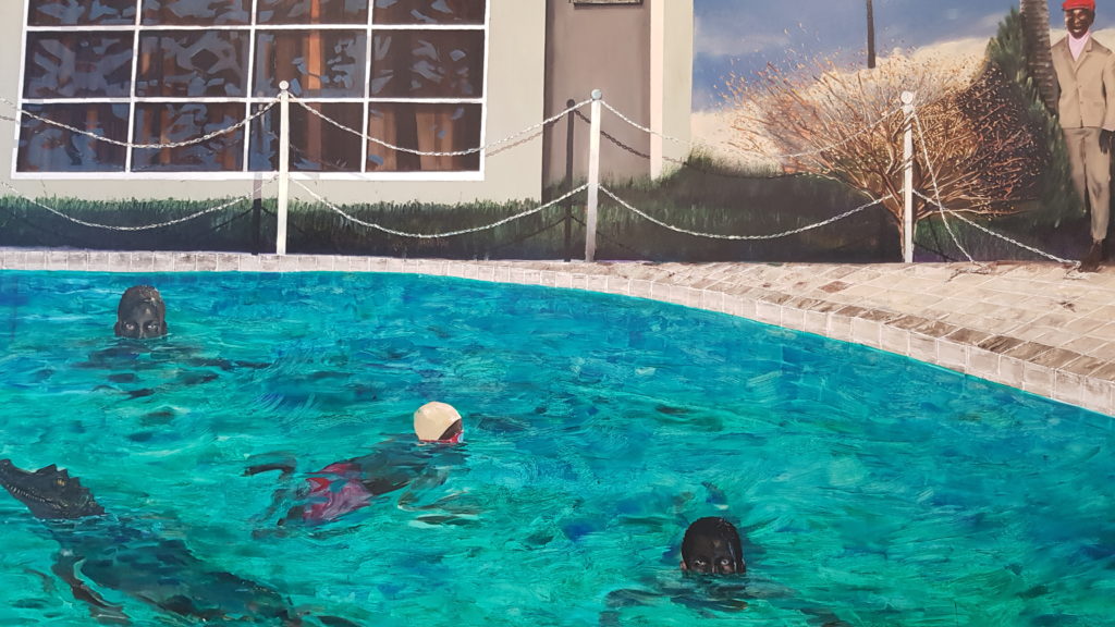Puis on s’extraie du centre pour aller à la Fondation Boghossian, Villa Empain où Henry Loyrette, ancien président du Louvre, à concoctée l’exposition Icons dans cette icone architecturale en soi. De cette image vénérée dans les monastères reculés de l’Orient chrétien, une résurgence continue subsiste chez les artistes selon le fil rouge choisit et exploré dans tous les espaces privés de la demeure du riche industriel, amateur d’art. Que ce soit Andy Warhol, Pierre et Gilles qui ouvrent le parcours, Yan Pei-Ming, Sarkis (sublimes), Wim Delvoye, Douglas Gordon et l’étonnant vestige de notre modernité aseptisée, l’homme de ménage de Duane Hanson placé devant la pergola et piscine de la Villa.