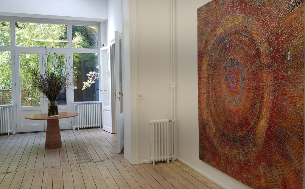 Restons dans le quartier du Sablon pour découvrir les galeries qui ont fait le choix de cet épicentre des antiquaires. A l’occasion de la Art Brussels Week, nouvelle version (cf mon article général), elles se mobilisent et nombreuses sont les étrangères à avoir favorisé la capitale belge pour leur implantation européenne. Dans le sillage de la puissante Gladstone Gallery, la très pointue Mendes Wood fondée en 2010 à Sao Paolo, après New York a jeté son dévolu sur un hôtel Art Déco historique signé du belge Adrien Blomme au 13 de la rue des Sablons. Elle y présente le premier solo show bruxellois de l’artiste brésilien Antonio Obà dans le prolongement de la présentation lors de la FIAC 2019. Contraint à l’exil après menaces de mort, son œuvre graphique et picturale investissant l’ensemble des espaces, mêle syncrétisme religieux et dénonciation politique. Autre galerie brésilienne, la galeria Jacqueline Martins qui a ouvert en pleine crise sanitaire un élégant espace rue des Laines donnant sur un jardin, avec une programmation faisant le pont entre le Brésil et l’Europe.