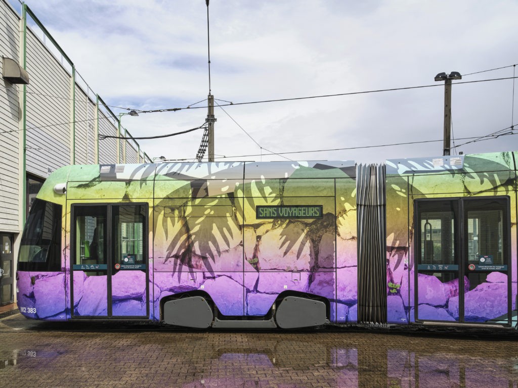A noter qu’Amélie Bertrand (également représentée par Sémiose galerie) a été invitée à s’emparer de deux tramways qu’elle habille d’une composition picturale composite qui agit comme un miroir.