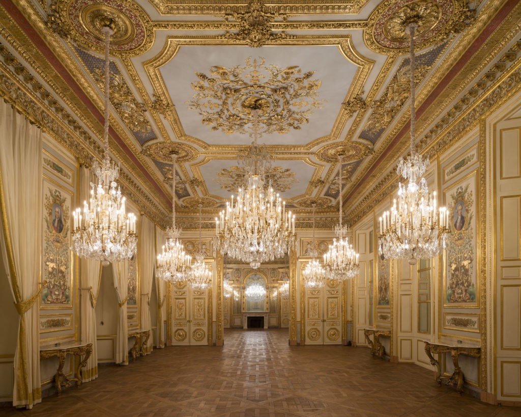 C’est l’architecte du roi, Anne-Jacques Gabriel qui remporte le concours lancé par Louis XV –on dirait appel d’offres de nos jours – autour de la statue équestre de la place Royale. Deux palais sur la place de la Concorde sont ainsi prévus dans une fonction au départ décorative, puis le Garde-Meuble de la Couronne s’établit au 2 place de la Concorde et l’intendant Pierre-Elisabeth de Fontanieu y fait aménager ses appartements en 1772. Marc-Antoine Thierry de Ville d’Avray lui succède et fait procéder à certains aménagements dans le décor notamment. Puis l’Etat-major de la Marine y établit son quartier général avec l’ouverture d’un musée naval. Ce sont ces différents appartements et pièces d’apparat que propose la visite organisée par le Centre des Monuments Nationaux qui gère ce monument. Le projet d’exploitation visant à faire de l’Hôtel de la Marine un site emblématique de l’attractivité parisienne a convaincu pour son ancrage dans le prestigieux passé tout en regardant vers l’avenir avec des préconisation d’exploitation rentable à travers d’une part une offre de dégustation gastronomique –François Piège aux commandes- et d’autre part un centre de coworking au cœur du quartier de la Concorde. Clé de voute de cette démarche qui vise la mise en lumière des métiers d’art, le mécénat de la Fondation Al Thani qui exposera certains chefs d’œuvre de sa collection dans l’ancienne galerie des tapisseries, espace de 400m².