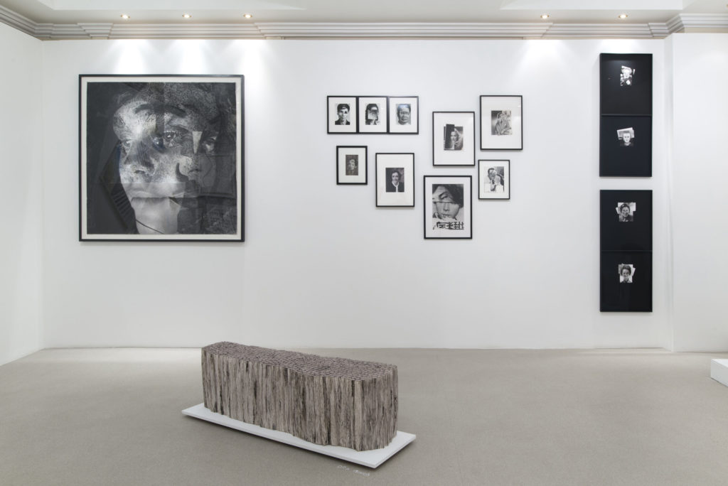 La galerie Bernier/ Eliades dans un élégant espace proche de Chatelain, expose l’artiste Valérie Mannaerts qui aime aussi jouer avec les matériaux dans des scénographies de son invention. La grande sculpture faite de dessins sur une pièce de toile brute représentant des portraits de femmes, brouille les limites et les échelles. Comme un tableau dans le tableau.
