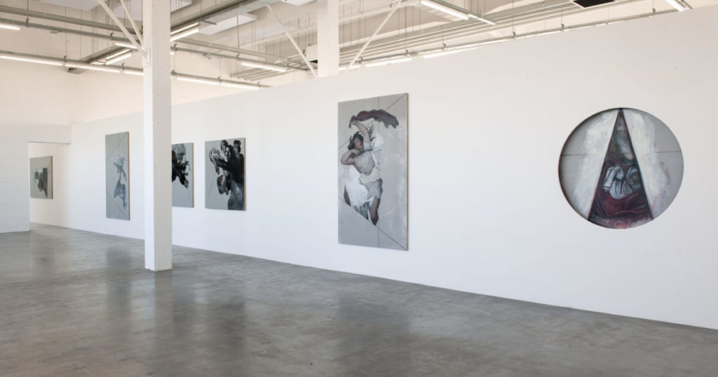Si Broothaers connaissait Antoine Wietz, cela a été une découverte pour l’artiste R.H Quaytman qui en fait le point de départ de son projet suite à sa visite de son atelier-musée. A partir du sujet de la détresse des femmes qui devaient travailler que le peintre romantique traduit dans des allégories mettant en scène des femmes géantes en voie d’émancipation, elle prélève des fragments qu’elle recycle ensuite selon sa pratique sémantique.