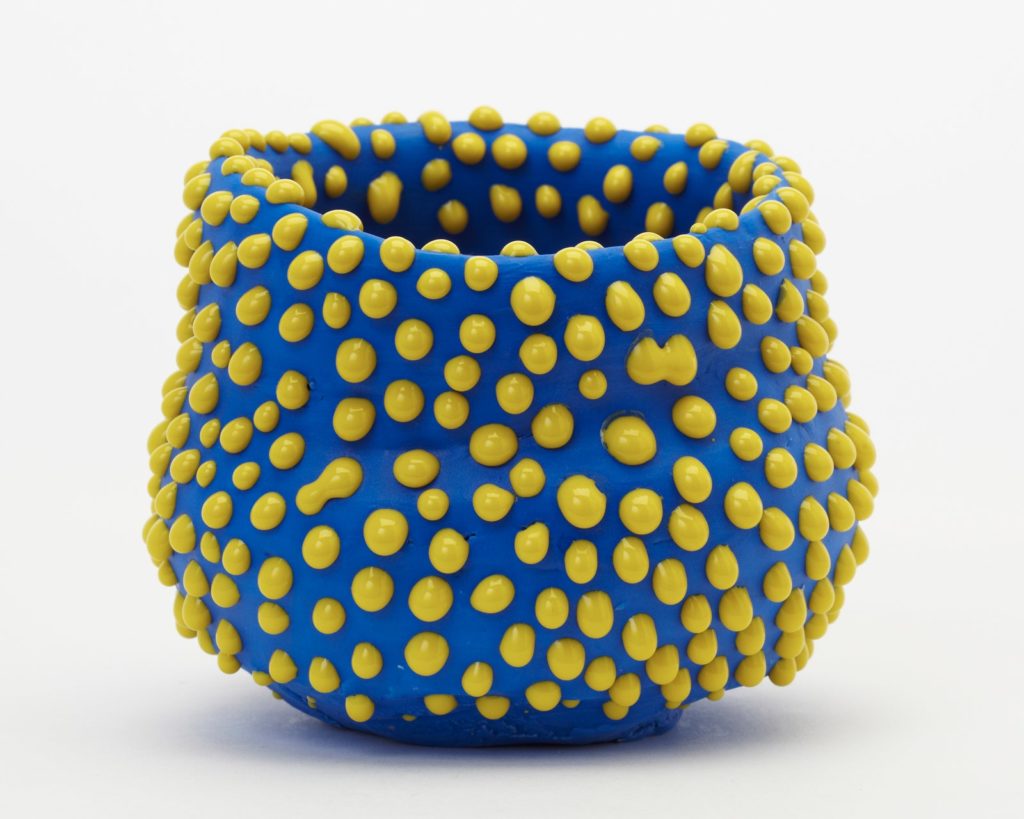 Ron Nagle, Captive Morgan, 2012, faïence, émail, polyuréthane catalysé et résine époxy, 14,6 x h 13,3 x 14,6 cm, collection particulière. © Ron Nagle, Courtesy Matthew Marks Gallery