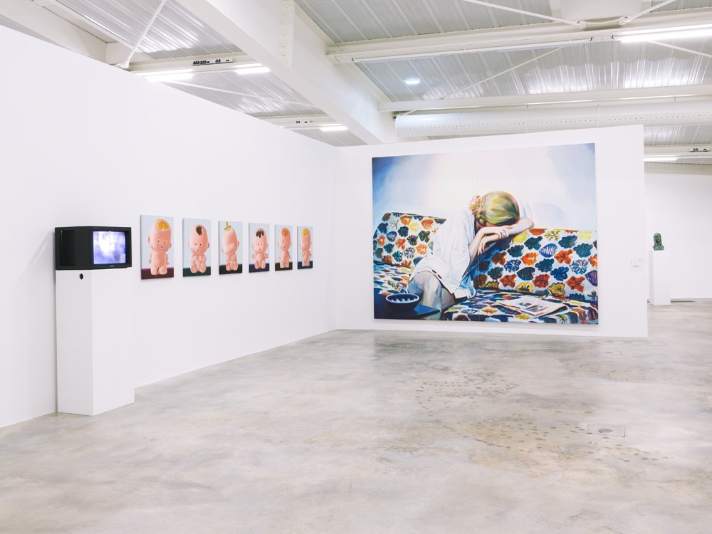 La remarquable exposition conçue avec Claire Jacquet, directrice du Frac Nouvelle-Aquitaine MECA est placée sous le signe du double. « Body Body » titre choisi, renvoie au corpus de travail et à la question du corps, prégnante également dans sa démarche. Parmi les « 1081 peintures » conçues entre août 1980 et fin 2020 la sélection de 103 peintures, 4 vidéos et 5 sculptures, déroule le film de sa vie, de ses expérimentations multiples, de ses rencontres. Au total 40 ans de création sous le signe de l’hybride, de la projection et des contradictions : good and bad paintings, le bon goût du mauvais, la norme et son contraire. Une salle spéciale est dédiée aux peintures phosphorescentes. Entre les figures de femmes célèbres victimes de meurtres ou d’évènements tragiques (Sylvie Vartan, Sharon Tate ou la cantatrice Marjorie Lawrence écartée de la scène par une poliomyélite), héroïnes littéraires (Simone de Beauvoir nue) ou Barbie girls, il est question du féminin et ses faux semblants : « Parce que je le vaux bien » titre d’une de ses vidéos à base de publicités pour les shampoings.