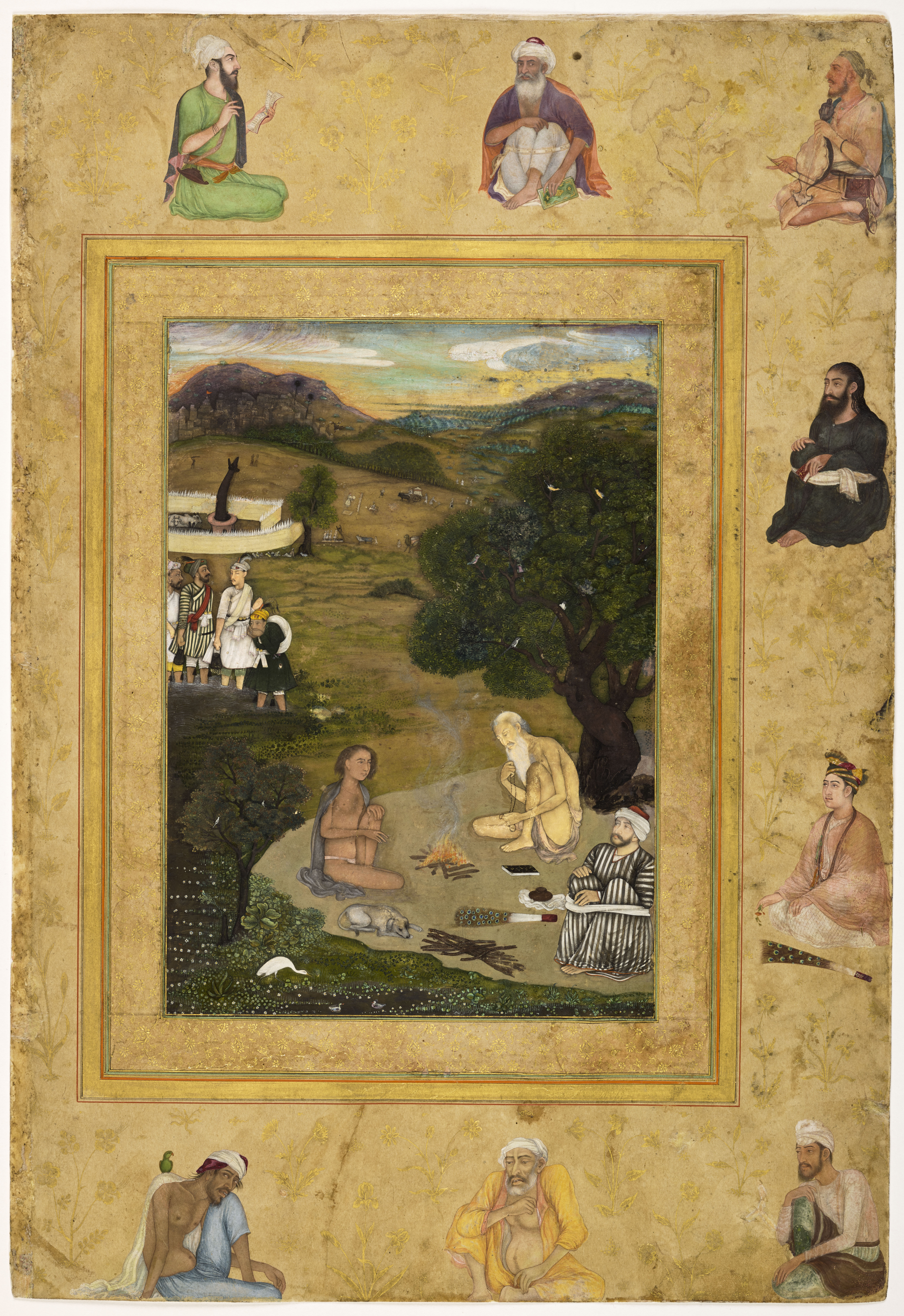 Ascètes auprès d’un feu Page du Late Shah Jahan Album École moghole, vers 1640-1650