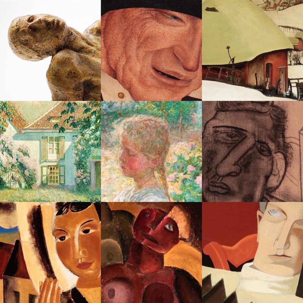 Etape suivante dans le village de Laethem-Saint-Martin qui regroupait une communauté d’artistes attirés par la lumière et le pittoresque de la Vallée de la lys entre symbolisme et expressionisme. La première génération à s’y établir George Minne, Valerius De Saedeleer ou Gustave Van de Woestijne cherchent à fuir la ville et prônent un retour à la nature avec un certain mysticisme. La seconde génération avec Constant Permeke et Gustave et Léon de Smet se tourne vers un expressionisme profondément flamand. Un troisième groupe constitué d’ Hubert Malfait, Albert Sevaes, Jozef De Coene, Albert Claeys perpétue cette « rare plénitude » pour reprendre le titre d’un ouvrage sur les artistes de Laethem.