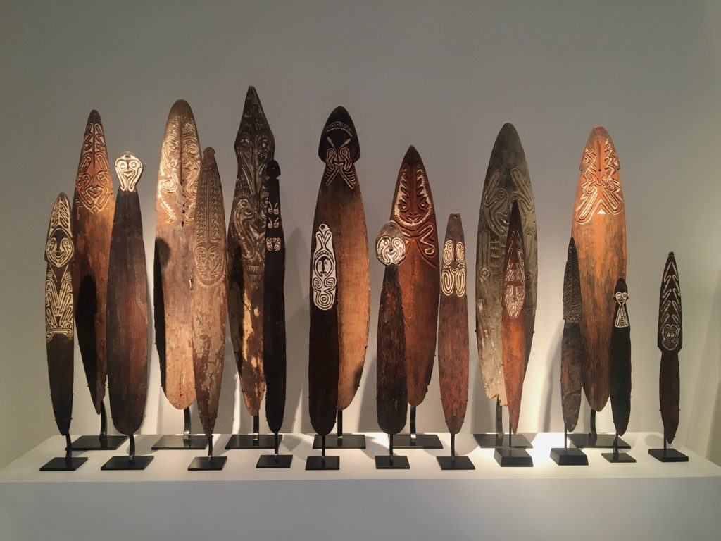 Changement de cap avec l’art premier en majesté chez Serge Schoffel.  Il nous présente une exceptionnelle sélection avec une figure de reliquaire Kota du Gabon et un masque Senoufo de Côte d’Ivoire, un ensemble de rhombes et objets rituels d’initiation de Papouasie-Nouvelle-Guinée, collectés pour la plupart par le célèbre anthropologue allemand Thomas Schultze-Westrum et des pierres du désert du Sahara. Didier Claes nous a également réservé quelques objets mythiques. Vice-Président de la BRAFA cette reconnaissance témoigne de son engagement. Commissaire de nombreuses expositions il participe à plusieurs foires telles que prochainement 1 : 54 à Paris. AKAA Paris 2021, Bruneaf, Parcours des mondes, Tefaf, la Biennale des Antiquaires..