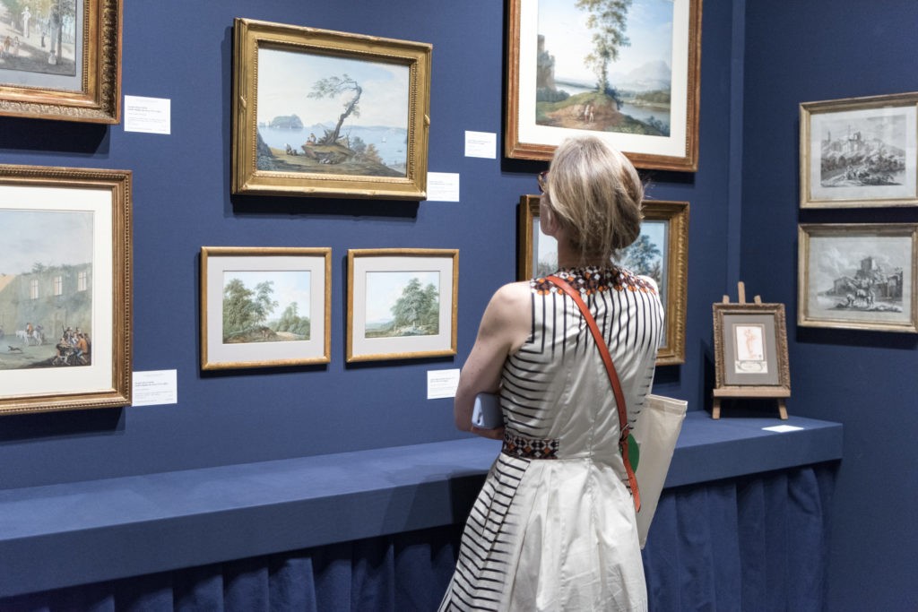 Remarquons l’aquarelle « Feuille de Mauve » de Albertus Jonas Brandt chez Onno Van Seggelen (Rotterdam) ou la sanguine de François Boucher « Etude de crocodile » chez JL Baroni & Marty de Cambiaire. Les « deux lévriers dans un parc » de Johann Elias Ridinger chez Martin Moeller (Hambourg) mais aussi un sublime portrait de femme d’Emil Nolde.