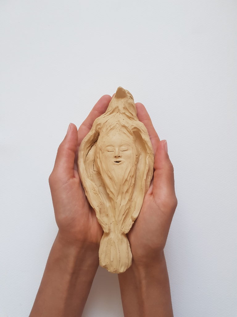 C’est elle qui a entièrement imaginé le parcours dans une totale liberté. L’exposition réunit trois séries dont Bardo qui donne son titre à l’exposition. Ces oiseaux, des moineaux de très grande taille, des figures mi-oiseaux mi-humains qui sont de plus une espèce en voie de disparition en Île-de-France. La série Hera (2021-2022) symbolise à travers ces papillons à visage humain à la fois la métamorphose, la fragilité et la beauté à partir du nom de la déesse Hera protectrice des femmes, sœur et femme de Zeus dans un clin d’œil à la philosophie d’Héraclite pour qui rien n’est permanent. On retrouve cette notion de transformation continuelle, de changement, de flux vital qui anime la démarche d’Odonchimeg avec une incursion vers la philosophie grecque et la présence de ces visages humains qui renvoie l’homme à sa propre finitude.