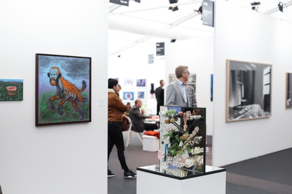 De plus, cette année, la foire se dote, en plus d’un nouvel espace dédié aux discussion et conférences. L’agencement et la scénographie du restaurant ont aussi été entièrement repensés et accueillent les toiles monumentales et colorées d’Adrien Vescovi, qui bénéficie d’un remarquable solo show au Casino, Jours de lenteur.