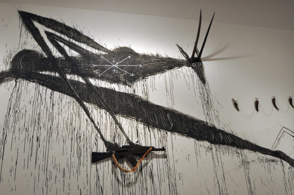 « Tout le poids d’une île » est la première exposition d’une collection particulière d’art cubain et elle se tient en Bretagne à Rennes, sous l’impulsion d’Anne Langlois et Patrice Goasduff, directeurs du centre d’art 40mcube qui ont associé au projet Jean-Roch Bouiller, directeur du Musée des beaux-arts puis Loïc Le Gall, directeur du centre d’art Passerelle à Brest. François Vallée, collectionneur, professeur, critique d’art et traducteur rennais a dédié sa vie à Cuba. Il a rassemblé à partir des années 1990, au fil des hasards et des rencontres, 400 œuvres à ce jour d’artistes de renommée internationale mais aussi d’artistes peu connus ou à l’écart du marché, des années 1960 à nos jours, allant à l’encontre d’un certain nombre de stéréotypes sur Cuba et sa diaspora comme il le souligne. Il incarne également un profil de collectionneurs peu académique, loin des préjugés liés à la richesse personnelle ou à la filiation bourgeoise, avec pour unique motivation « l’exaltation, l’érudition et la profondeur ». Il a répondu à mes questions aux côtés de Jean-Roch Bouiller qui accueille cette exposition curatée par 4 commissaires autour de 70 artistes, avec un prolongement à 40mcube à partir d’une monographie dédiée à l’artiste majeur Segundo Planes. Des commandes spéciales ont été passées à des artistes et amis du collectionneur si bien que le visiteur est plongé dès le patio du musée des Beaux-Arts dans une myriade et polyphonie de sens et de symboles avec la monumentale fresque de Nestor Arenas et l’installation de Yornel Martinez. Un code couleur très particulier, à rebours du white cube dominant, fait le lien entre les deux démarches.