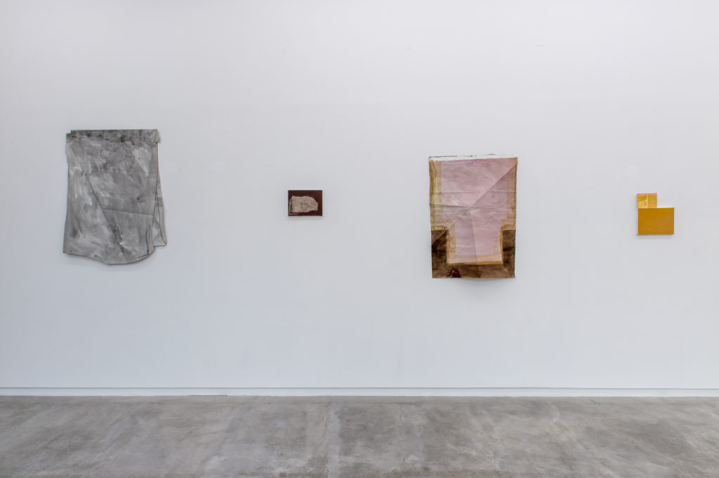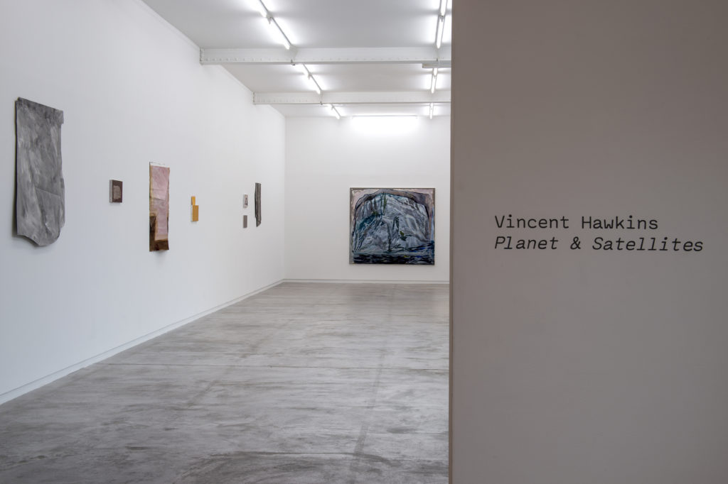 Son travail sur papier est connu en France. Il a, par exemple, été montré récemment à l’Art dans les Chapelles en 2022. Ses œuvres sur toile ont cependant été peu montrées jusqu’à présent. En réunissant peintures à l’huile et à l’acrylique et œuvres peintes pliées sur papier, l’exposition dévoile ainsi la tension qu’explore sans relâche l’artiste entre ce qui est caché et révélé, durable et éphémère, fini et inachevé, sur le point de s’effondrer. L’accrochage et le dialogue des œuvres dans l’espace est essentiel pour Vincent Hawkins. Pendant une semaine, il s’est confronté aux deux espaces L’ahah #Griset et L’ahah #Moret. Ce temps long de montage lui a permis de tester, s’approprier les lieux, de travailler des œuvres.