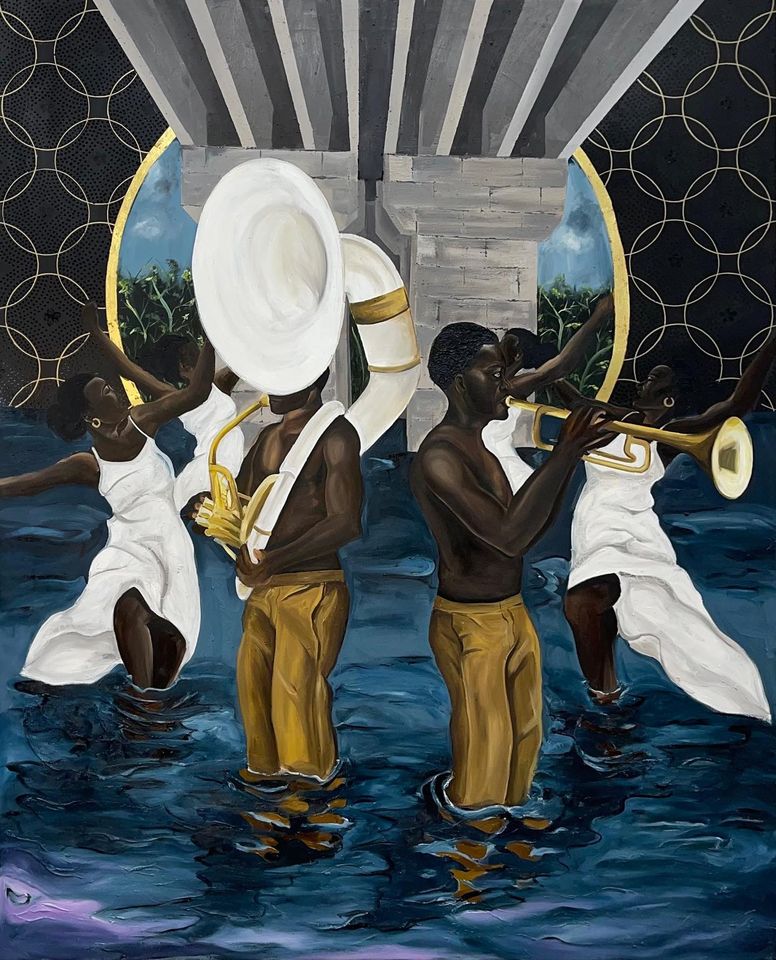 150×120 cm Huile, acrylique, modeling paste et feuille d’or 24 ct courtesy the artist & AFIKARIS