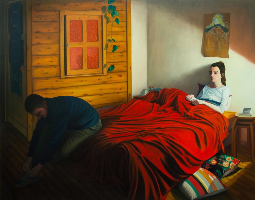 Autodidacte en peinture après un diplôme d’ingénieur, Dorian Cohen est repéré par Paris B à l’occasion du salon de Montrouge de 2017. Lentement en solitaire à l’atelier il s’attache à traduire le temps qui passe dans des scènes d’intérieur inspirées des grands maîtres. Dans une veine littéraire naturaliste, le quotidien des opprimés ou des invisibles à qui il redonne une vraie place. Traitement des tissus, de la lumière avec une grande dextérité. Mélancolie sourde et solitude contemporaine.