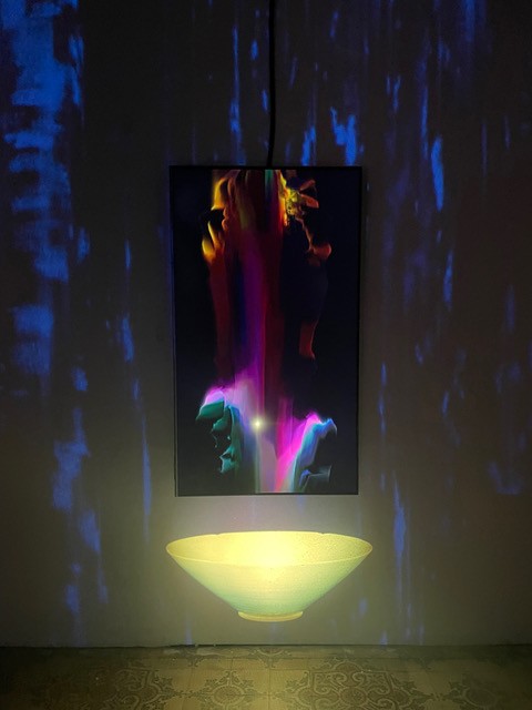 Les artistes la définissent comme une exposition chamanique où l’on vient déposer une pensée, un objet, une offrande, un petit mot.. ou se mettre simplement dans un état de méditation profonde. Les images de synthèse sont tirées du réel, les vidéos et le son sont entièrement synchronisés, rien n’est laissé au hasard. Les trois artistes forment un collectif tout en ayant chacun leur pratique. La Montagne Liquide était au départ une proposition autour de la nuit, de la fête et c’est la première fois qu’elle est adaptée pour un centre d’art. Simon Evrad a déjà exposé aux Brasseurs.