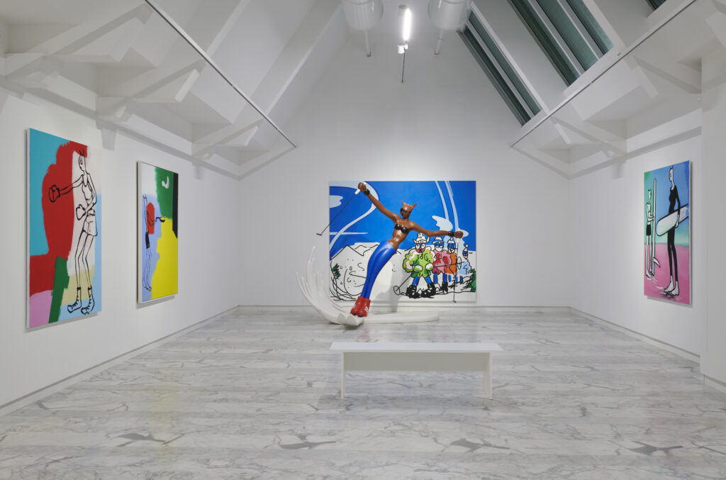 Nombreuses sont celles qui se saisissent de stéréotypes et notions de genre pour mieux en désamorcer les mécanismes dans une visée politique. Que ce soit le machisme des stades avec Johanna Cartier, Droit au but, les grands récits mythologiques ou héroïques avec Maryline Terrier (trouble de l’autoportrait) ou Pierre Gonnord (portraits de rugbymen à contre-emploi) les minorités racisées avec Noel W Anderson, le corps et sa représentation devient un prétexte pour une vibrante leçon de peinture des maîtres flamands chez Guillaume Bresson au néo-pop avec Nina Childress en passant par une leçon d’abstraction avec Christian Babou ou Raoul De Keyser qui fut journaliste sportif. Si plusieurs de ces noms sont relativement passés à côté des radars, cette dérive picturale est l’une des propositions marquantes du triptyque « Des exploits, des chefs d’œuvre ».