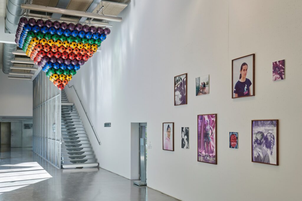 ME. Cela rejoint clairement une entrée politique et sociale qui parcourt l’ensemble de mon projet pour le Frac « Faire Société ». Dans le cadre généralisé de l’art nous avons un retard à combler dans la représentativité des artistes femmes par leurs œuvres dans nos collections. Une représentativité compliquée et qui a fait souvent l’objet d’un combat dans certaines disciplines sportives que ce soit au niveau des JO ou de certains domaines. Un combat qui allait naturellement se rejoindre et se retrouver dans le choix des artistes exposés avec le souci de montrer des artistes femmes de différentes générations, des plus jeunes qui vont porter un discours féministe différent de leur ainées. Nous n’avons pas réussi à atteindre la parité exacte sur les 3 lieux, le motif du sport n’ayant pas toujours été exploré par certaines générations. Cela a été plus le cas ces 10 dernières années notamment autour de la boxe. Nous avons tenu avec Jean-Marc à réécrire cette histoire au féminin.