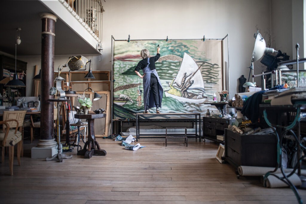 Sylvie Selig dans son atelier 2012 – © Brigitte Bouillot